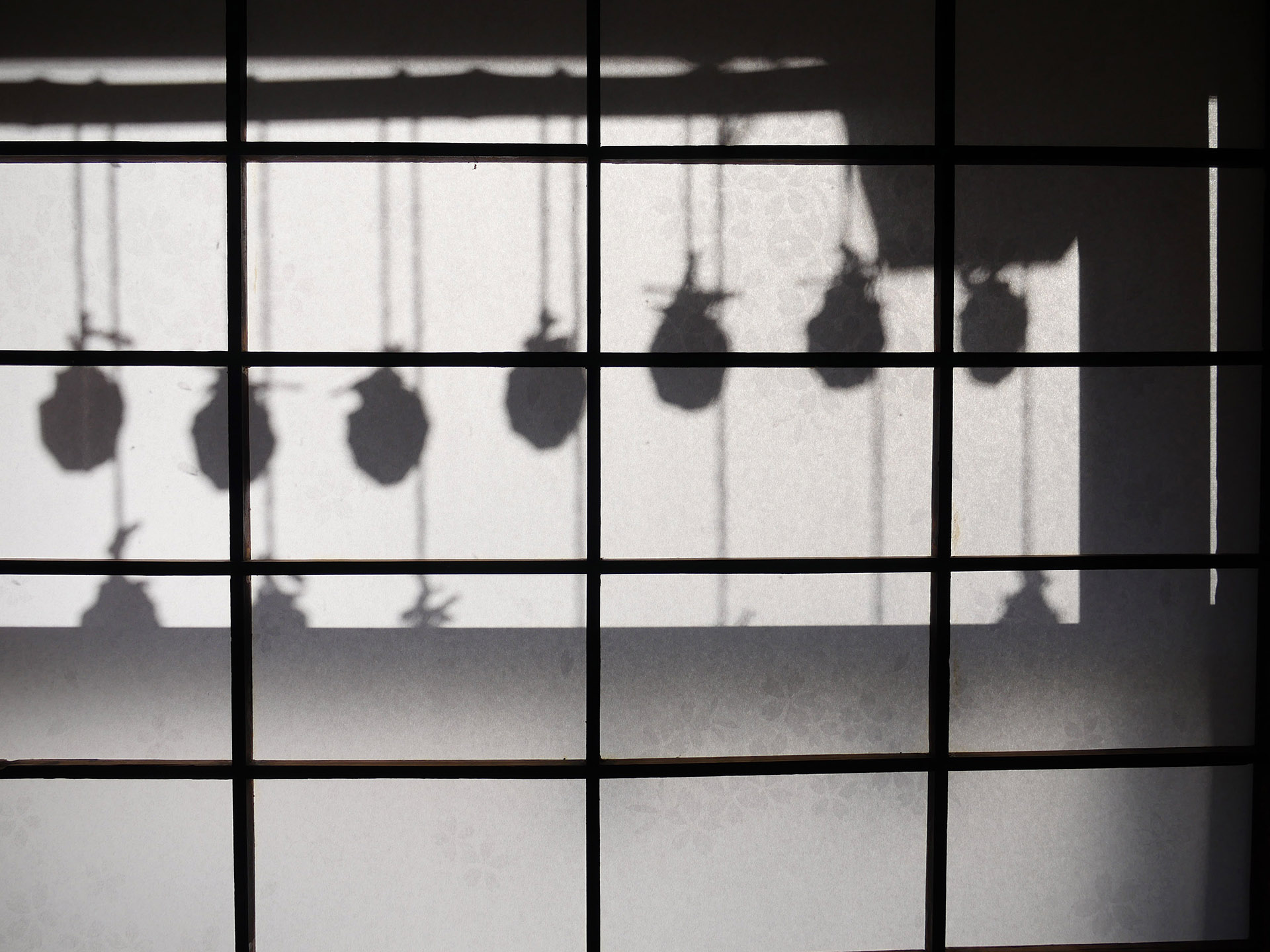 民宿「甲武信」障子に影を落とす干柿