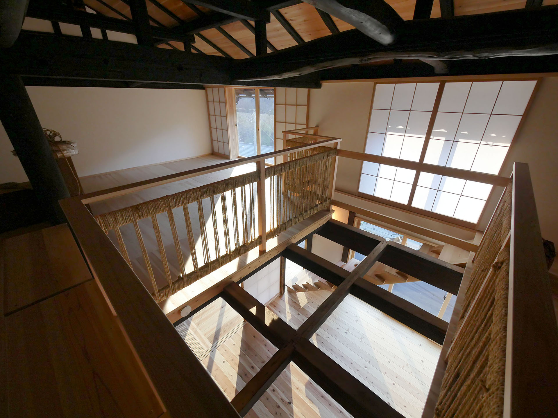 栃本旅籠「空」吹き抜けから1Fダイニング