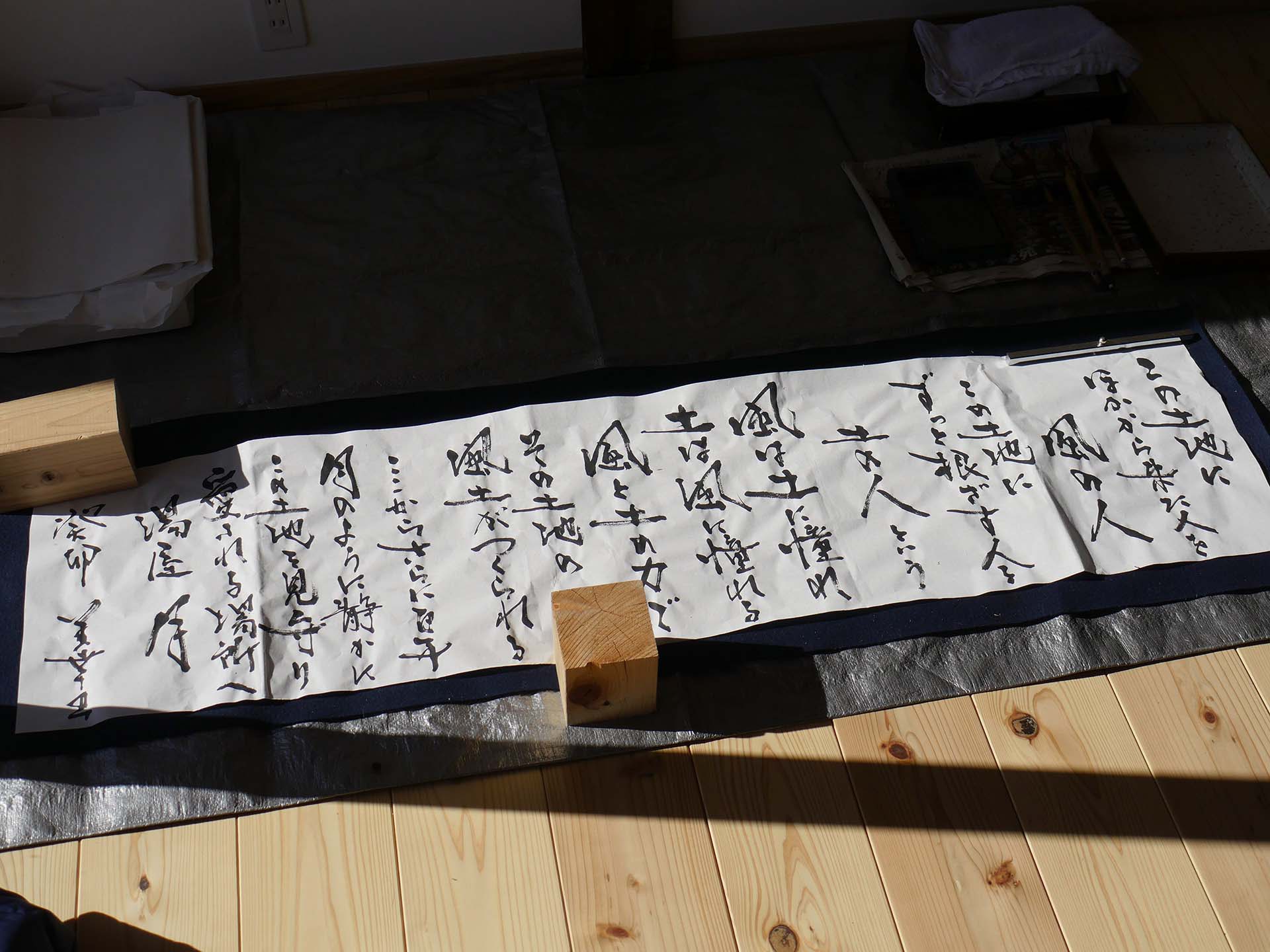湯屋「月」お披露目で建築家が揮毫した栃本への愛