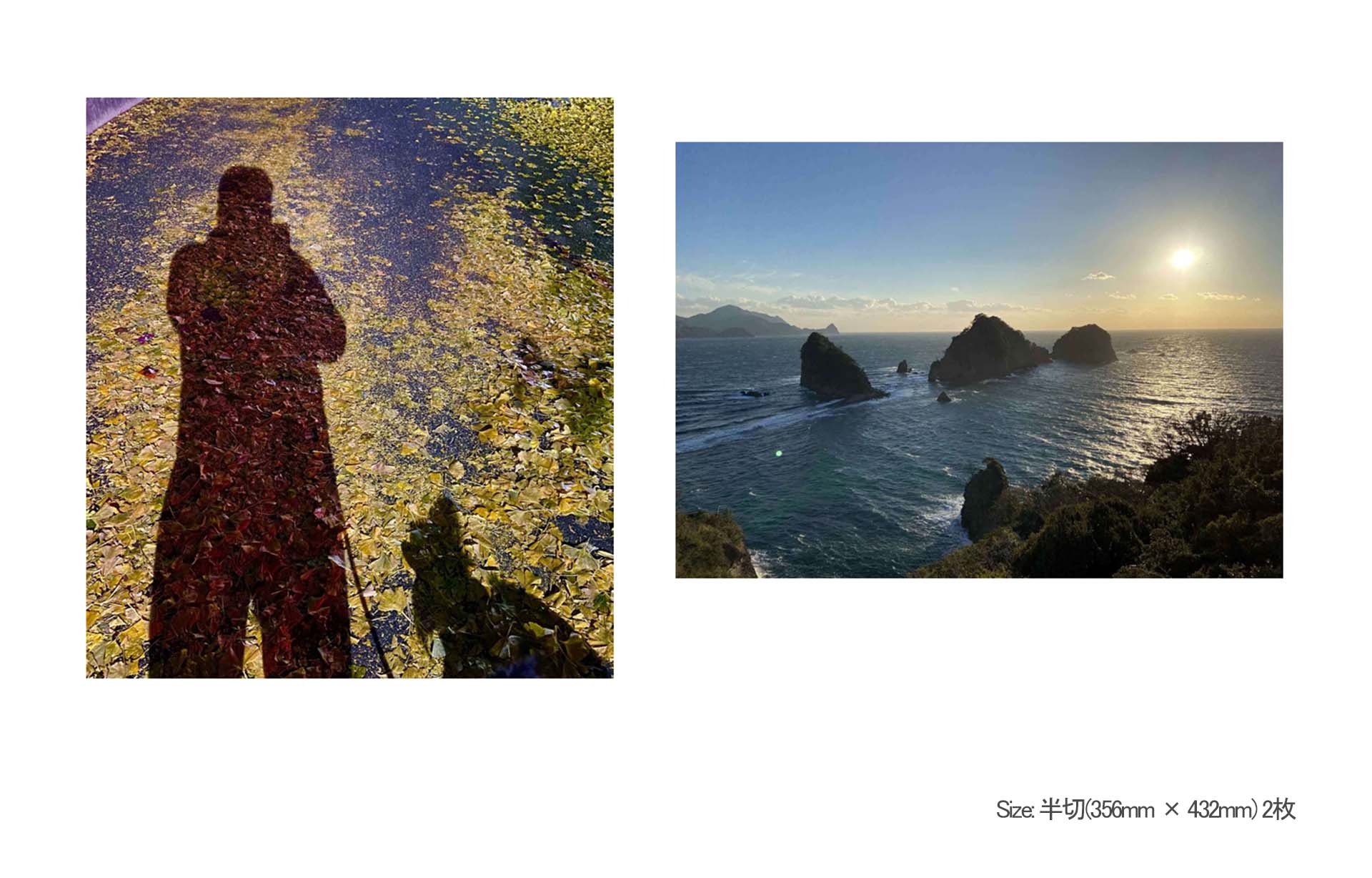 秋の夜長に、愛犬セイラ(パピヨン10歳)とブラリ散歩をしていたら、銀杏の落ち葉に射した自分たちの影がなんとも絵画的(クリムトっぽい色彩)だったので思わずシャッターを押しました。