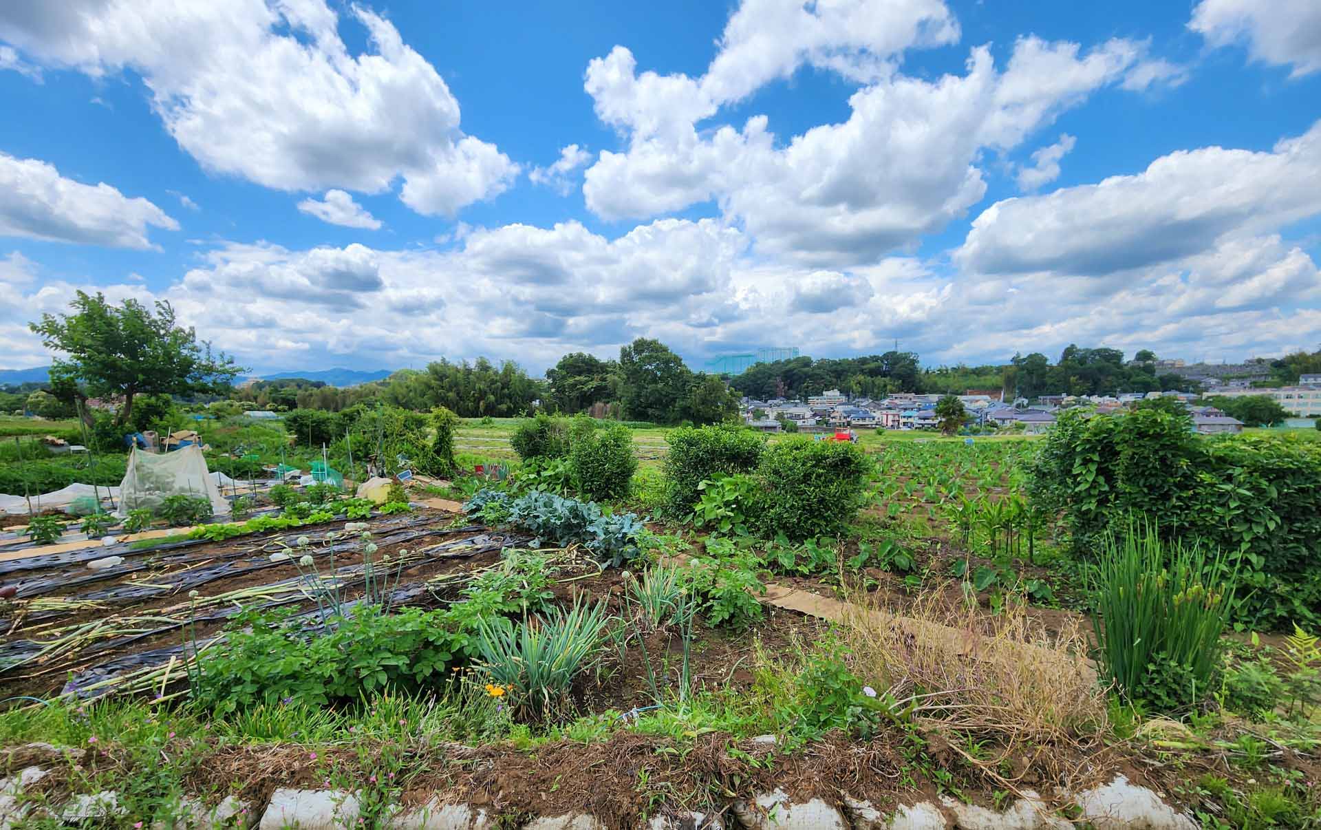 八王子市幹線2級6号線は、湯殿側と八王子南バイパスの間に存在し、農道の役割を果たしている道路です。 アスファルトで舗装こそされているものの、道幅は軽自動車がようやく通れるくらい、全長は2km弱しかありません。 両脇には森林と農地が広がり、ゆったりとした時間が流れる中で、四季を感じる小道です。 よく晴れた青空に白い雲が浮かんでいる初夏の正午のワンショットです。 この日の夜は記録的なほどの土砂降りになりました。